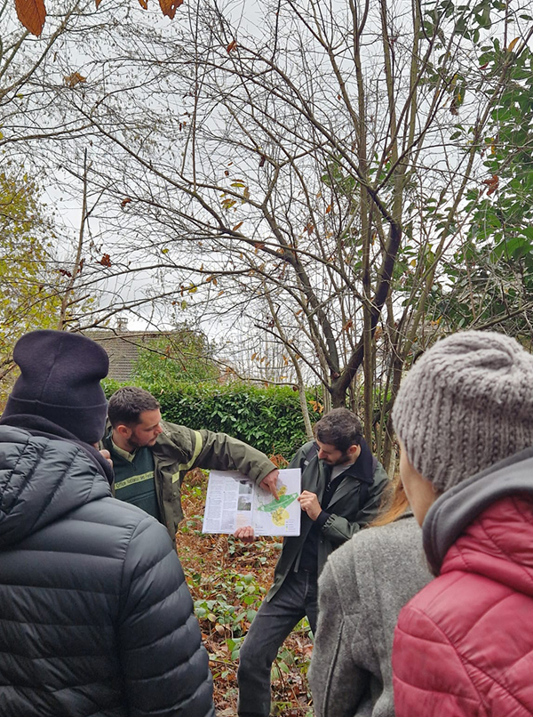 Les participants ont pu profiter d’une balade commentée par Patrick Laurent, technicien forestier à l'Office National des Forêts, et Guillaume Bernard, paysagiste conseil au CAUE 94, ponctuée de conseils pratiques sur l’aménagement des jardins en bordure de forêt.